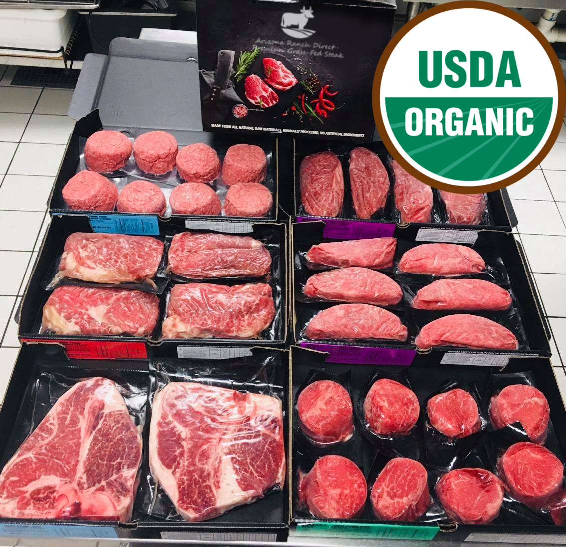 Enjoy 100% grass-fed beef from Arizona’s natural ranches, raised freely without hormones or antibiotics. Our USDA Prime Master Grill Beef Box features thick-cut, beautifully marbled steaks, vacuum-sealed for freshness and delivered straight to your door.